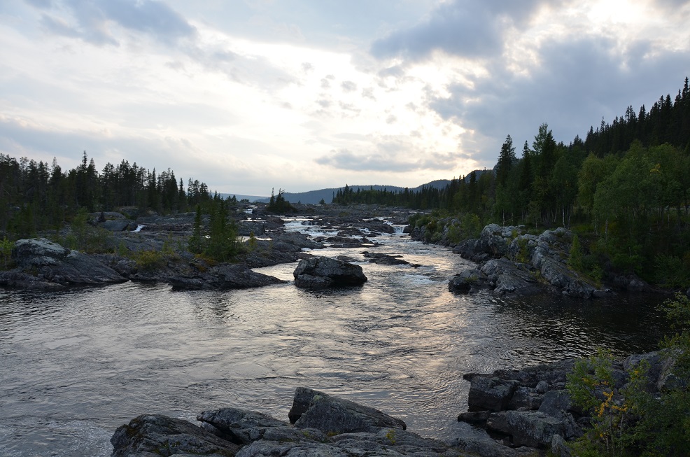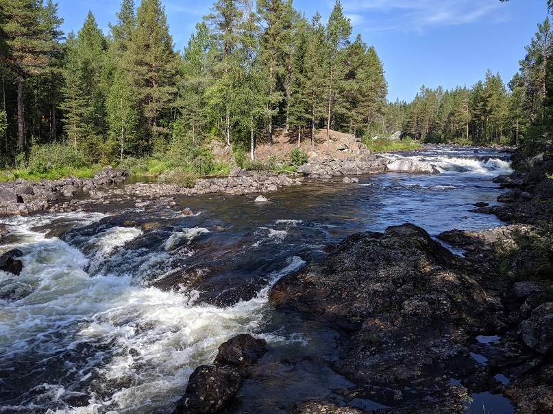 Enfin, nous finissons l’étape du jour et nous posons près des rapide de Litsjöforsen. Une petite balade sur les rochers pour prendre des photos puis déjeuner léger dans le van. On est cuit !