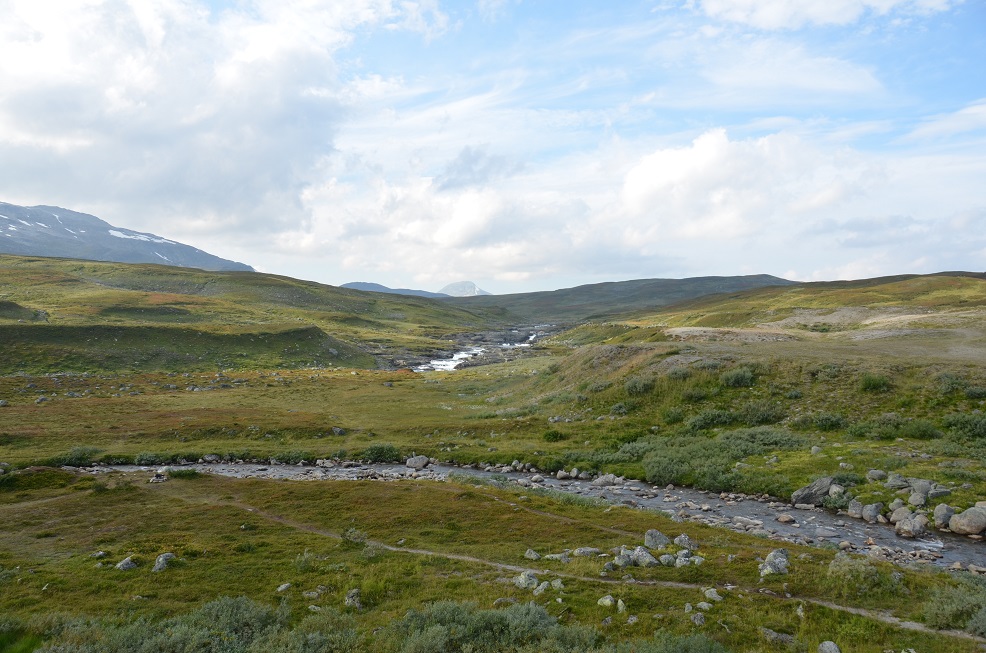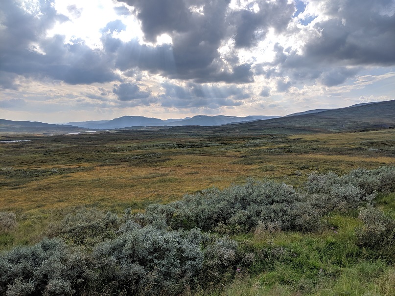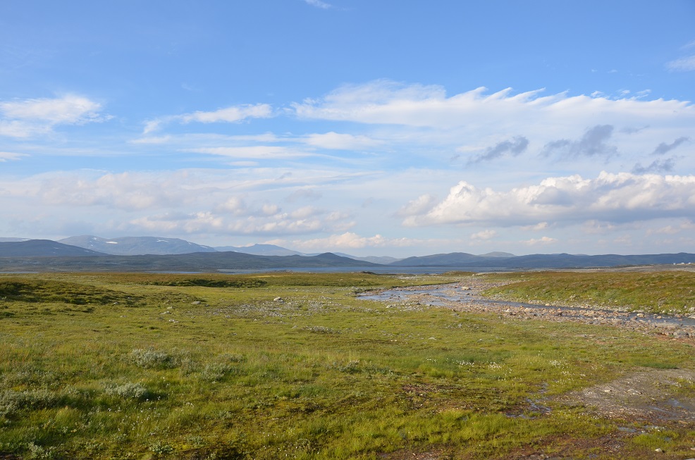 Nous nous remettons en route en pensant déjeuner à Stora mais c’est fermé. Nous poursuivons jusqu’à Ankarede où se trouve une chapelle Sami puis repartons pour une pause déjeuner / goûter vue l’heure sur un ponton au bord d’un lac. Commence ensuite la montée jusqu’au plâteau de Stekenjokk où les paysages sont magnifiques. Il s’agit du point culminant de la route, à 876 mètres d’altitude, qui nous permet de rentrer en Laponie.