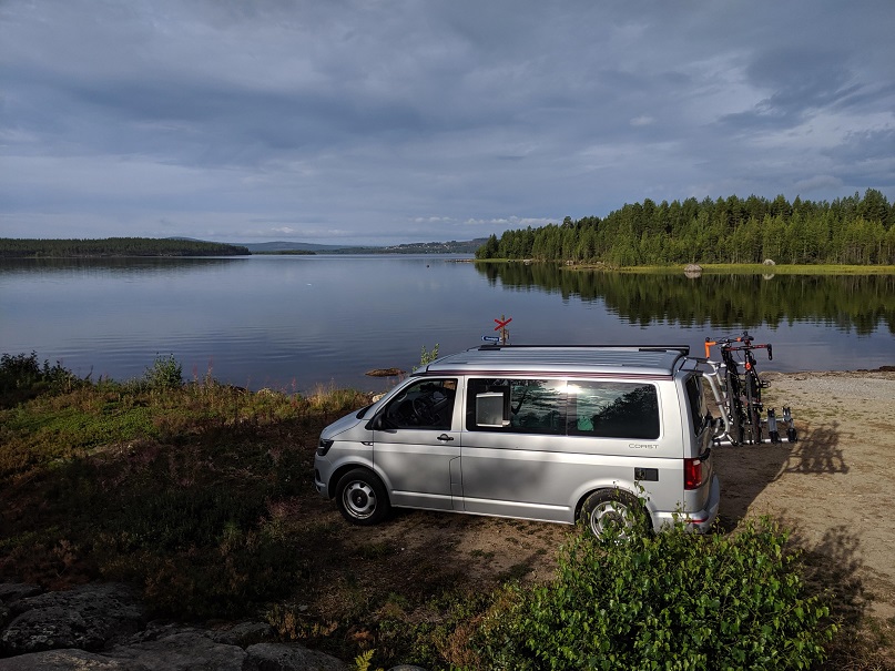 Dimanche 25 août 2019. Réveil naturel et matinal à 7h30. Il fait beau, la lumière sur le lac est joli, mais c’est envahi de moustiques et de mouches qui piquent. Nous déjeunons rapidement au bord de l’eau et prenons la route en direction d’Östersund.