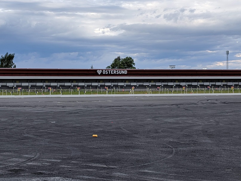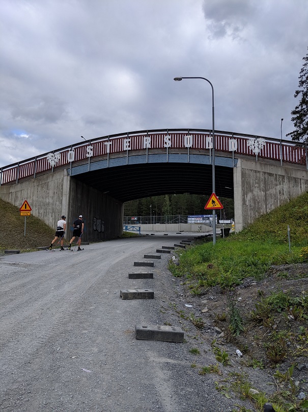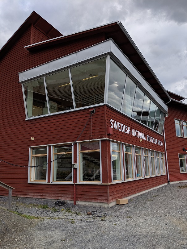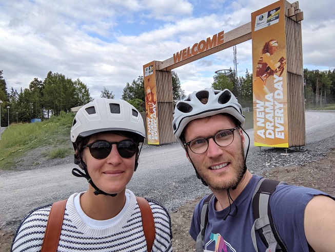 Arrivée à 12h30 à Östersund, nous nous installons au camping et déjeunons avant de laver quelques affaires. En attendant la fin de la machine, nous apprenons les règles du Durak et faisons quelques parties. Sur le coup des 16h, nous sautons sur nos vélos pour aller au stade de biathlon. On peut même aller sur le pas de tir ! Nous regardons quelques instants, croisons deux hommes sur des ski-roues et poursuivons la balade à vélo.