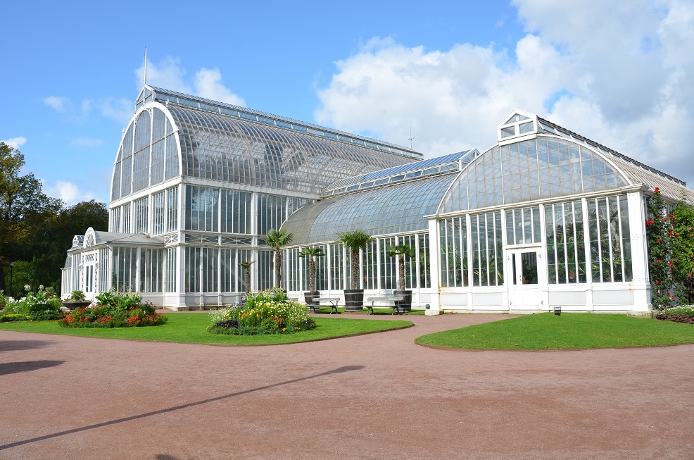 Nous allons jusqu’aux serres (palmiers, plantes tropicales, …), les visitons, traversons la roseraie et ressortons du parc au niveau du canal.