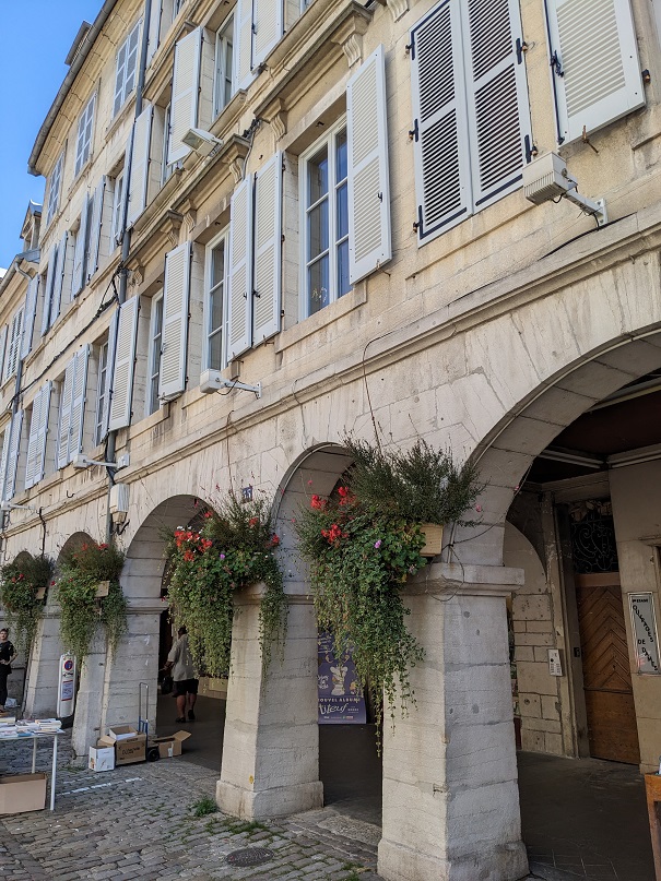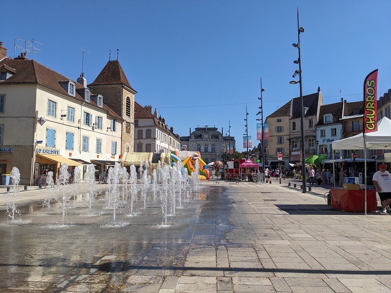 On déambule dans les rues avant de repartir direction Lons-le-Saunier. On se pose au Grand Café du Théâtre pour manger en terrasse puis on se promène dans la ville. C’est la braderie mais il n’y a pas foule et on peut marcher tranquillement.