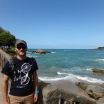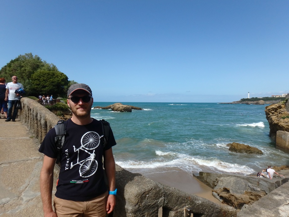 Mercredi 6 septembre 2017. Réveil sous la pluie. Nous profitons du temps maussade pour faire quelques courses et planifier le reste de la journée. Après un déjeuner à l’appartement, le soleil est de retour. Nous prenons nos sacs et partons à pied vers Biarritz. Sur le chemin, nous pouvons admirer les maisons typiques basques. Arrivée au phare de Biarritz, la vue sur la ville est très jolie. Nous poursuivons notre chemin jusqu’à la plage du Miramar où nous prenons un instant pour regarder les vagues et les surfers. Reprise de la marche le long de la plage pour atteindre la Grande Plage, le Rocher de la Vierge, et la vue sur la côte des Basques. La marée haute a totalement englouti la plage.