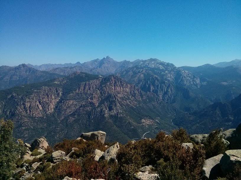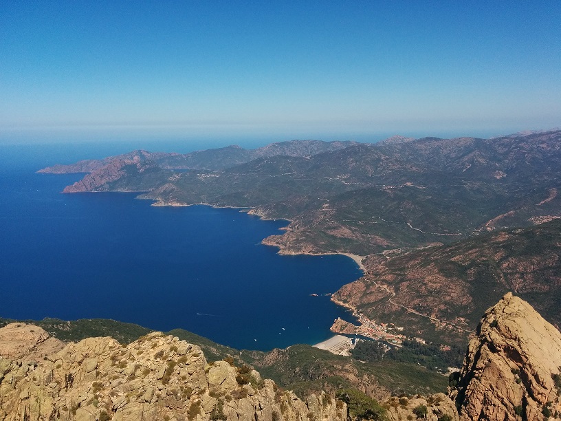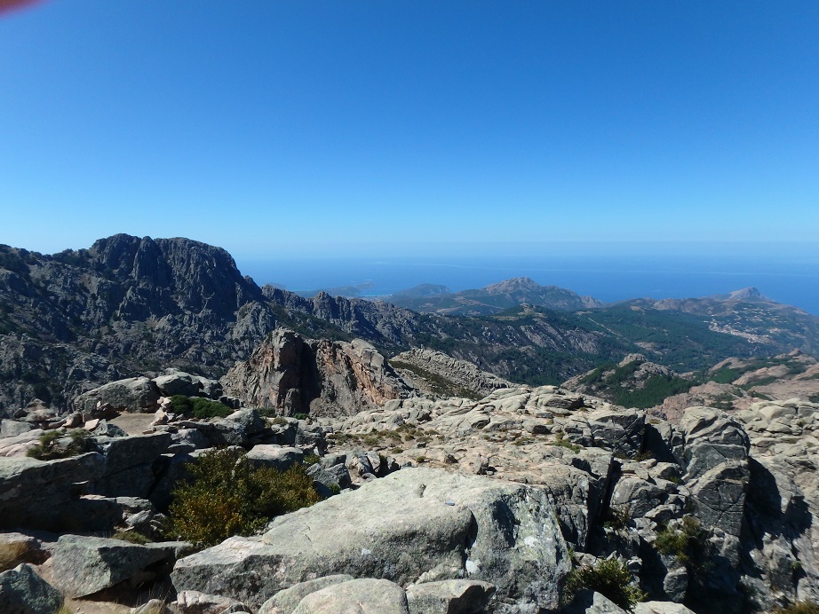 Direction Piana par la route des Calanques. Nous nous garons sur le parking de la tête de chien et démarrons la randonnée pour aller au Capu d’Ortu. Arrivés au sommet, nous pouvons voir le golfe de Porto et l’arrière pays.