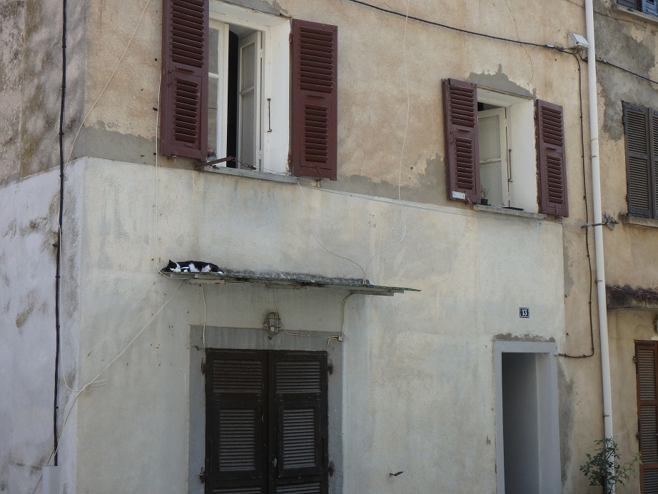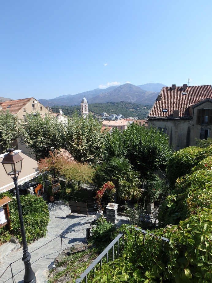 Réveil tranquille. Descente depuis le camping Monte Cinto jusqu’à Corte en évitant les vaches sur lesquelles on tombe nez-à-nez. Petites courses alimentaires. Visite des ruelles de Corte et passage au FRAC avant d’aller au belvédère.