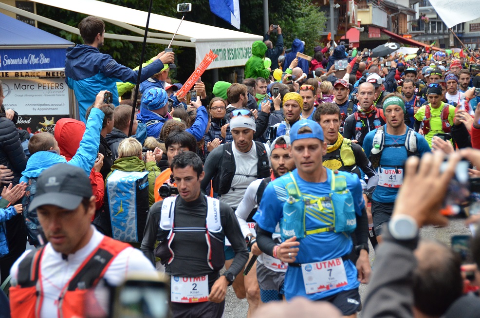 On récupère la voiture pour retourner sur Chamonix. Il ne fait pas très beau, on se réconforte avec un délicieux goûter (amandine myrtilles et chocolat noir / noisettes). Nous sommes installés en terrasse ce qui nous permet de voir les 2ème de la PTL finir leur course. Nous faisons un petit tour dans les boutiques de sport et suivons le départ en direct de l’UTMB. Nous voyons les élites partir et également Fabrice et André. Nous rentrons au chalet pour prendre une douche, dîner et nous coucher très tôt.