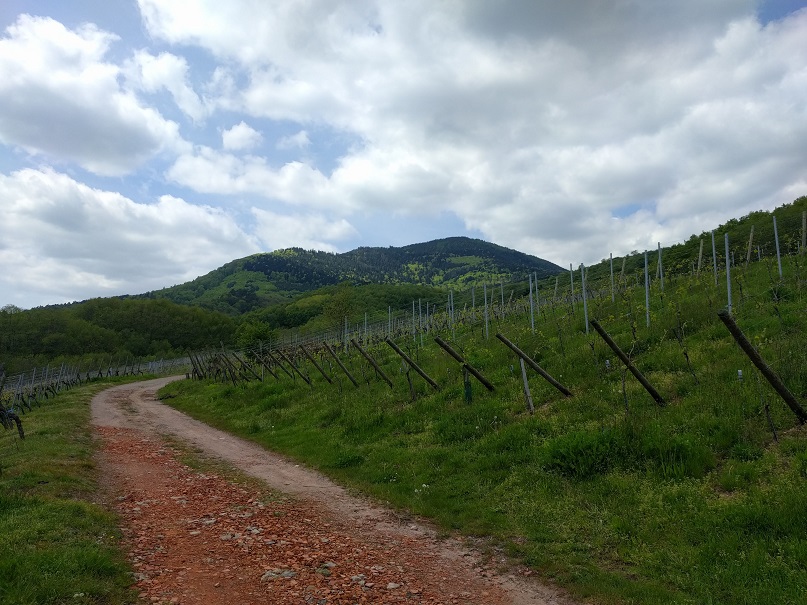 Le ciel n’est pas très dégagé mais nous prenons le temps de savourer. Puis, nous amorçons la descente jusqu’à rejoindre les vignes de Bernardvillé. Un dernier raidillon nous permet de prendre de la hauteur et d’avoir un dernier point de vue plutôt chouette. Le soleil fait son apparition au bon moment. Nous finissons ensuite la randonnée en rejoignant Andlau et le point de départ.