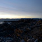 Réveil matinal et petit déjeuner, ensuite on se décide à aller courir. C’est dur et le vent se lève. Il pleut sur la fin de la séance. Douche qui fait du bien et préparation des repas Aptonia. On prend la route direction Svolvær que nous atteignons à 14h30. Il y a foule !On mange un goûter sur la place avec le soleil dans le dos. On achète au salade bar du Kiwi de quoi manger pour le soir. On va repérer un spot pour observer les aurores boréales vers Straumnes en espérant que les nuages ne gâcheront pas la fête. On va poser nos affaires au logement du soir : un sauna reconverti en hytte … On dîne et on s’habille chaudement pour partir à 22h30 vers le lieu repéré. On se positionne sur la jetée, il y a beaucoup de vent. La luminosité décline très lentement. On se réchauffe de temps en temps dans la voiture. On attend jusqu’à minuit mais les nuages commencent à arriver. On se laisse encore 30 minutes pour espérer voir une aurore boréale. Le ciel étant bouché et nos corps gelés, on décide de rentrer à 1h.