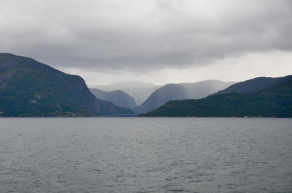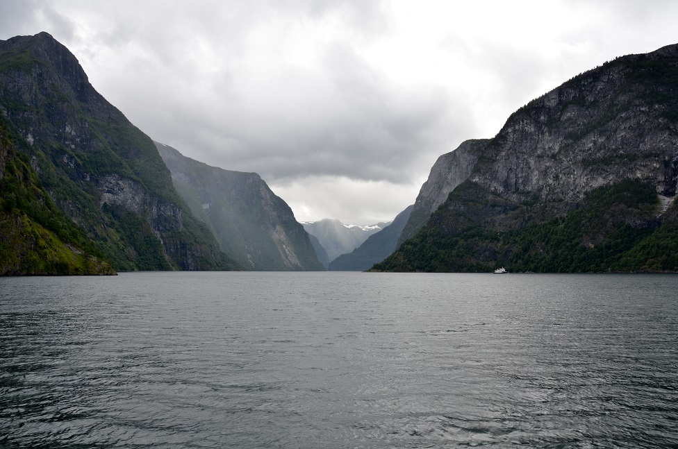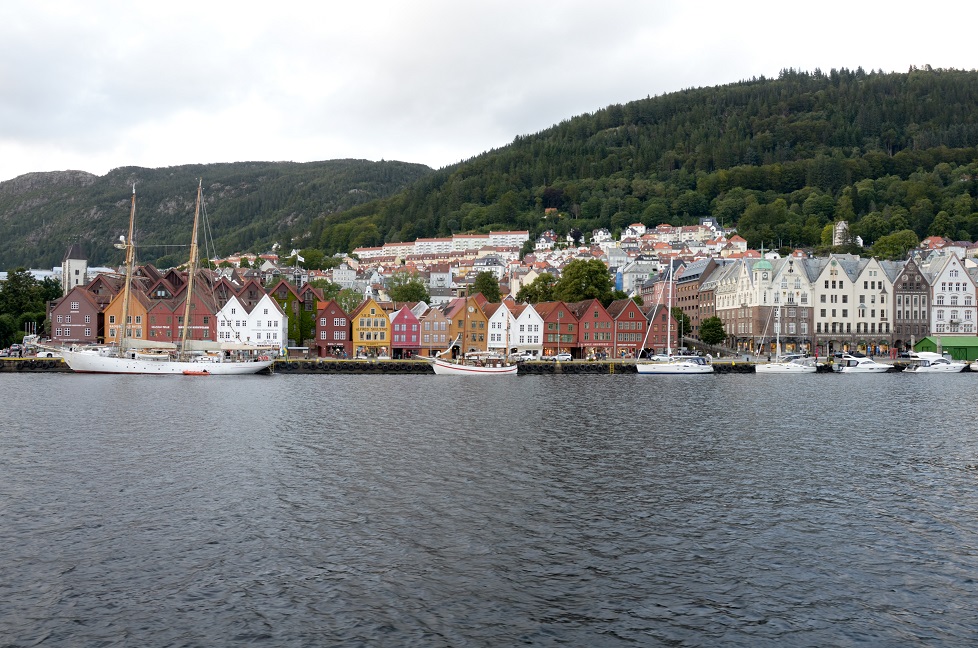 Celui-ci appareille à 15h30, ponctualité norvégienne oblige, puis remonte le Aurlandsfjorden, nous permettans d’apercevoir le Nærøyfjord. On emprunte le Sognefjorden et enfin on se dirige vers Bergen. Très beaux paysages des montagnes qui tombent à pic dans l’eau. Arrivée à Bergen et vue sur Bryggen. On récupère les clés de l’appartement et on dîne des polses dans du pain polaire avec une sauce mango curry. Découverte de la « gastronomie » norvégienne !