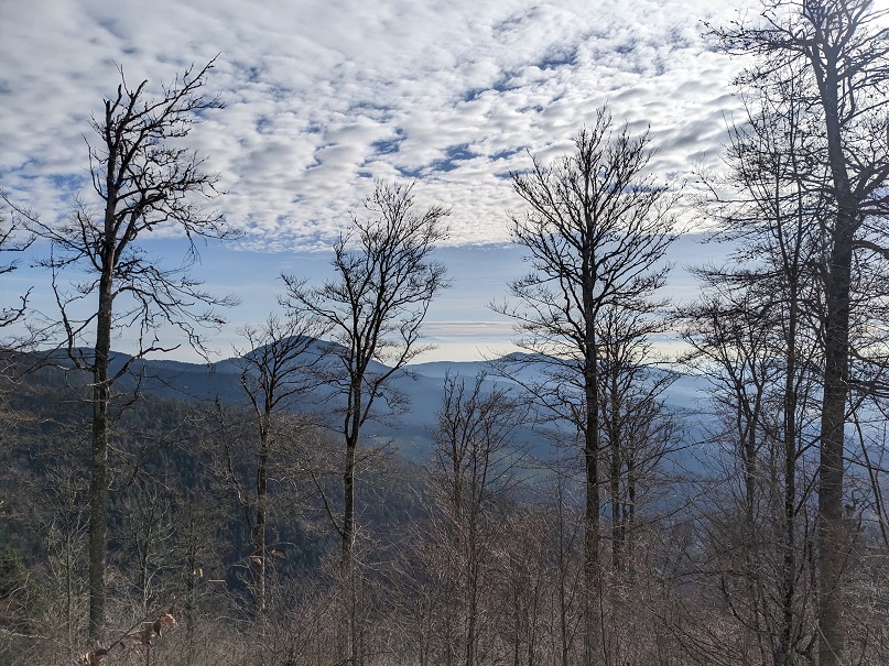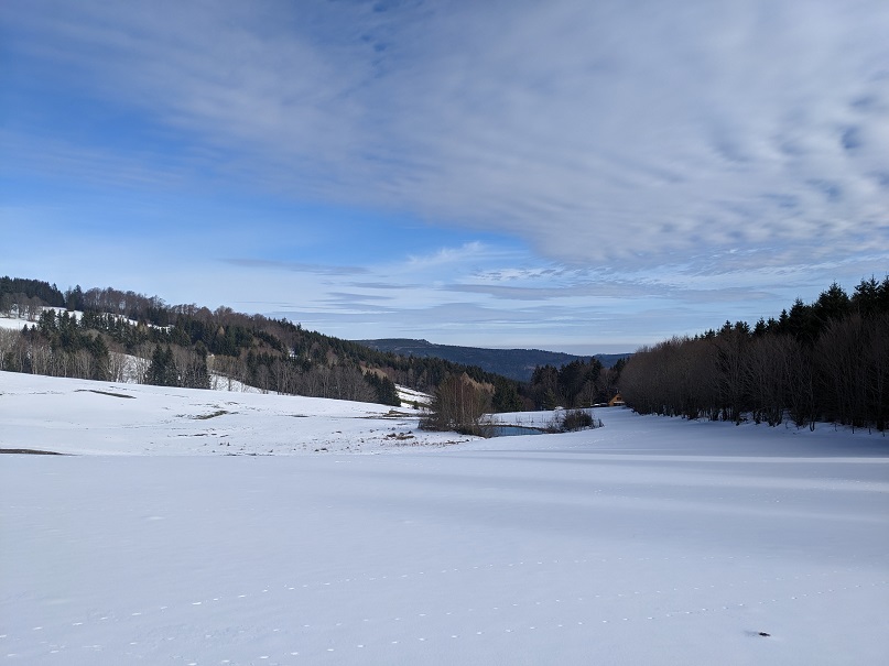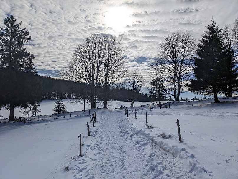 Pour profiter du beau soleil hivernal, et pour entraîner Thor à la randonnée, nous sommes allés nous balader dans le coin du champ du feu. Mais pour changer un petit peu, nous sommes partis du col du Kreuzweg.