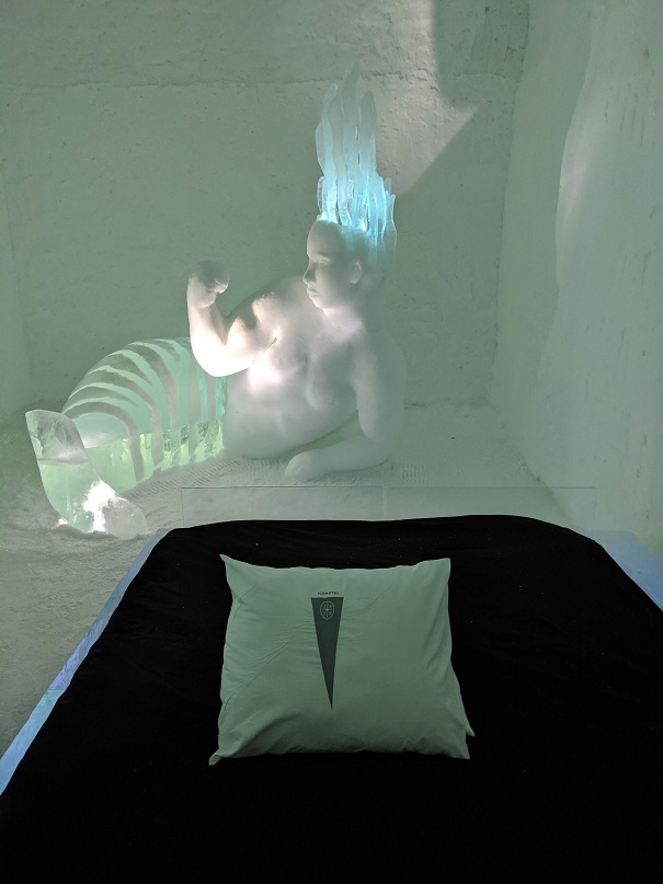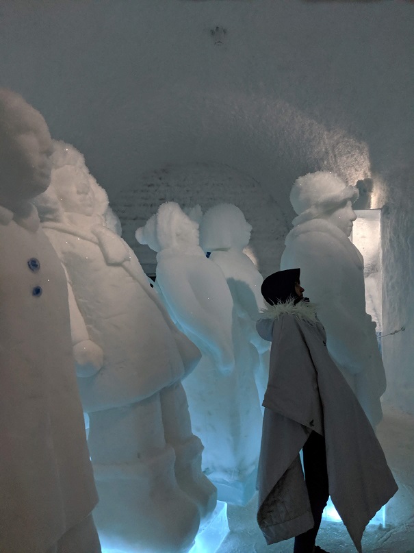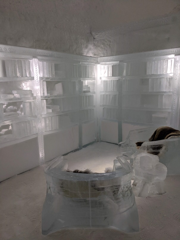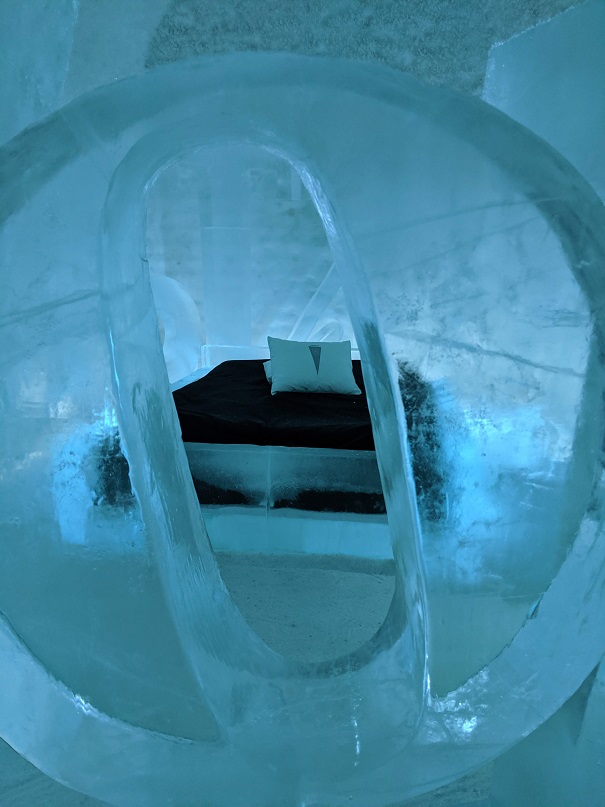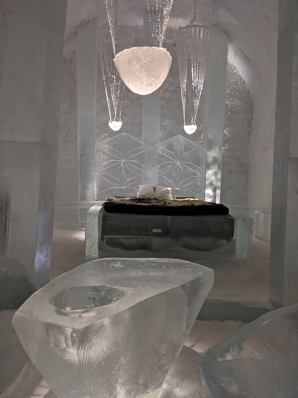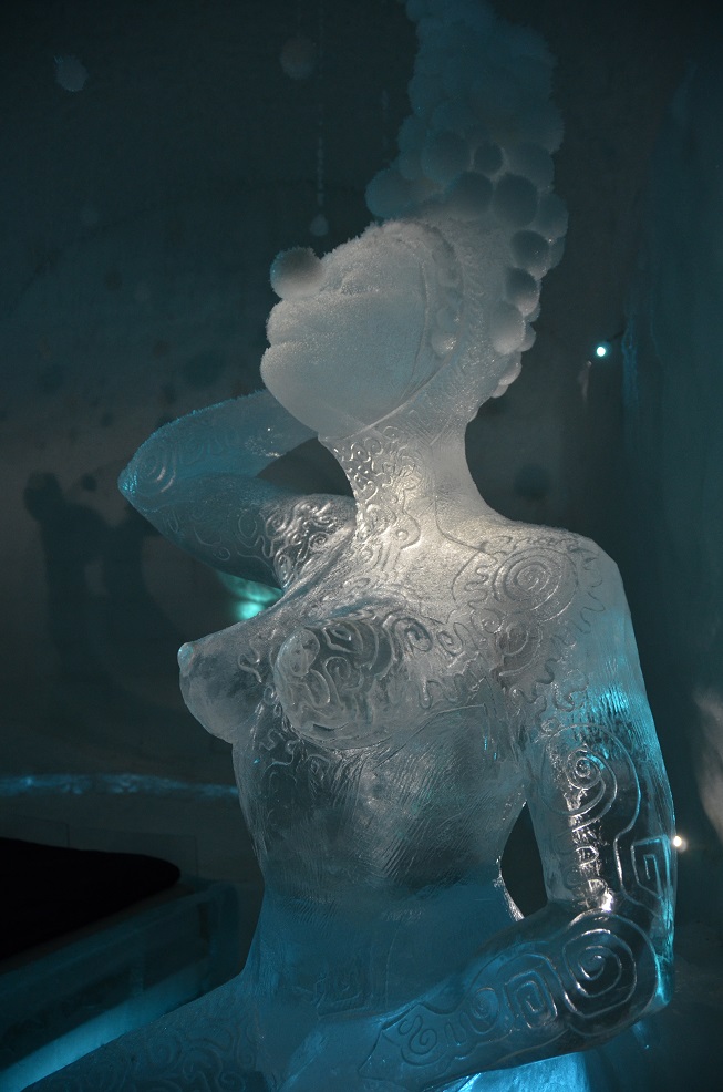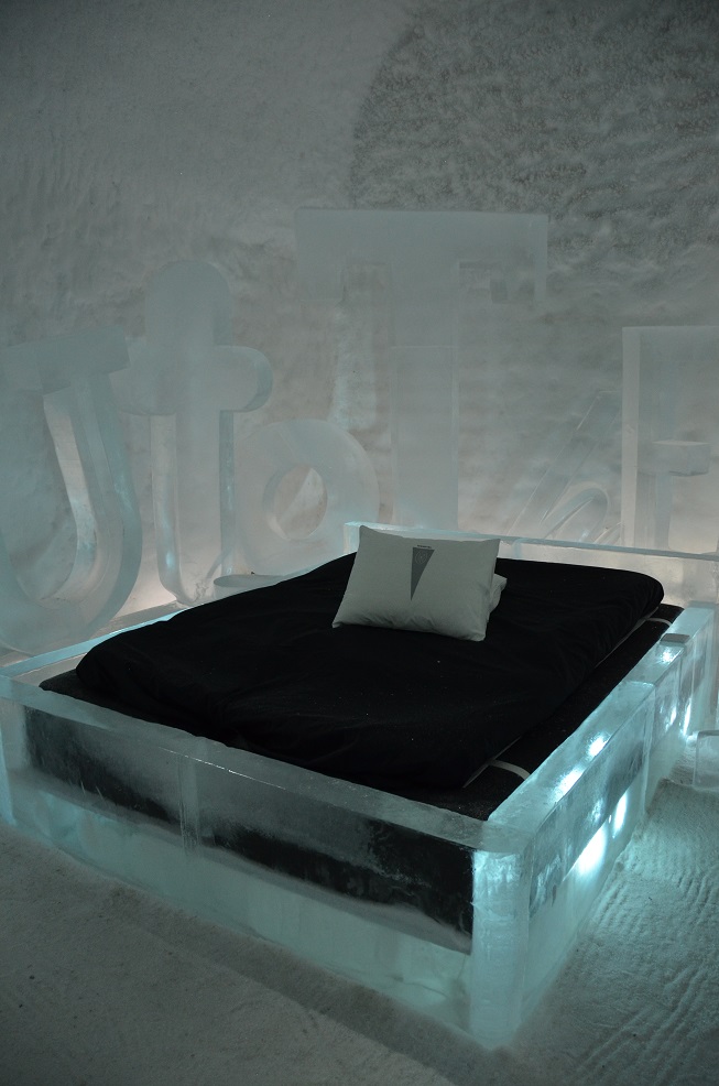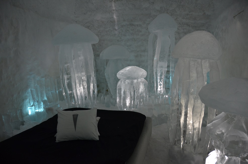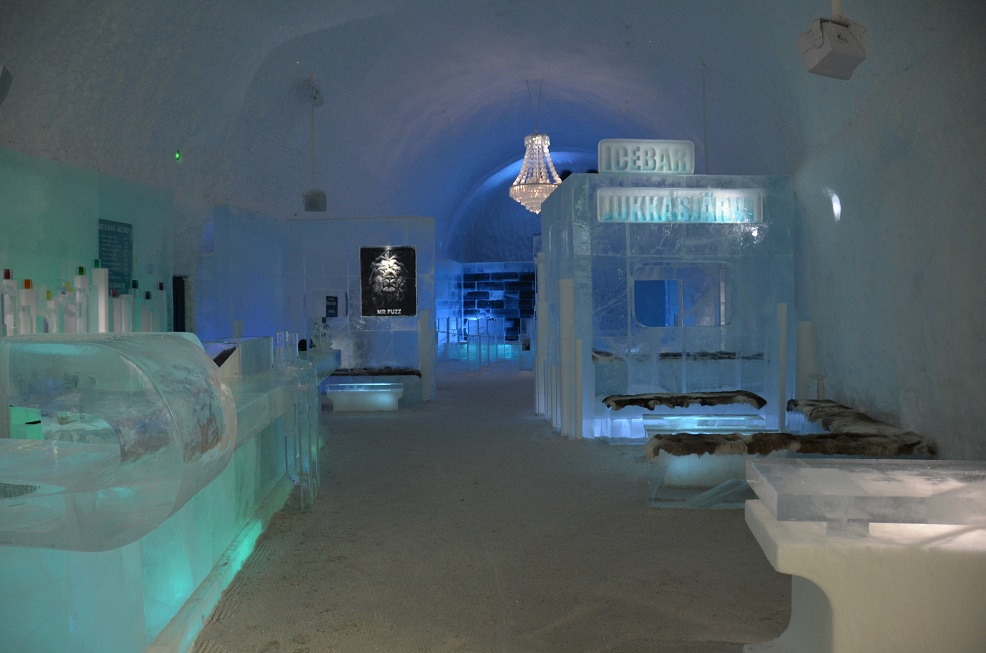 Il y a un bâtiment permanent, une sorte de congélateur géant, avec 20 chambres entièrement sculptées dans la neige et la glace. Il y a également un bar, et tout ceci par -5°.
