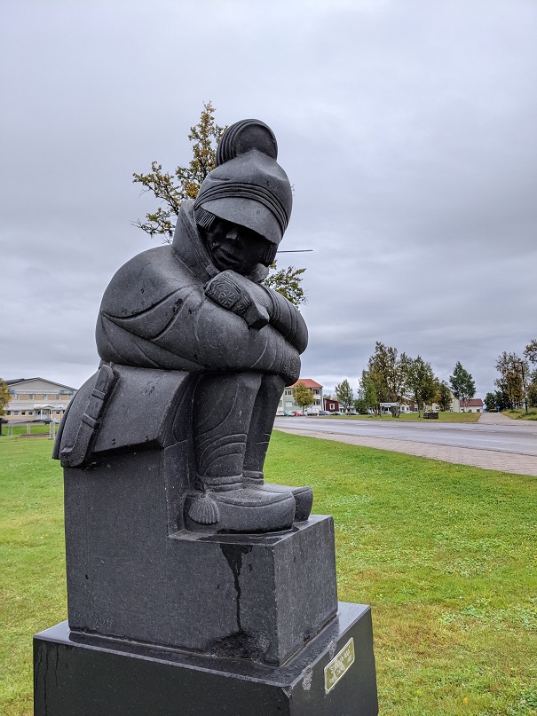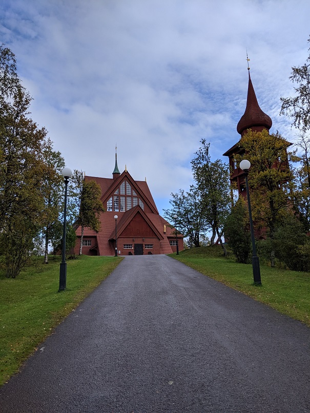 La guide nous explique le fonctionnement du deuxième bâtiment. Il est fabriqué chaque hiver à partir de blocs de glace récupérés dans la rivière voisine. Les chambres sont créées par des artistes. Chaque printemps, le bâtiment fond et disparaît totalement à l’été. Après cette visite, plutôt rigolote et intéressante, nous rejoignons Kiruna, toujours sous un temps maussade et des averses.