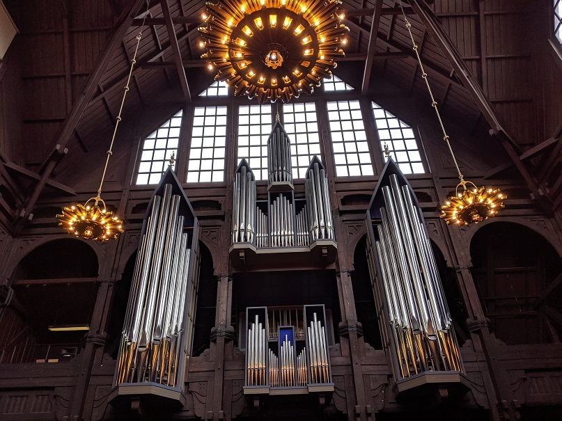 Nous déjeunons bien gras et bien salé au restaurant Stejk Streat Food (un food truck avec des tables sous un tipi chauffé). En ressortant nous allons faire le plein de carburant et d’eau et profitons ensuite de l’accalmie et d’un rayon de soleil pour visiter la ville. Visite assez rapide car on trouve une église et quelques ruelles vivantes où se tien un marché et où toute la vie semble être concentrée.