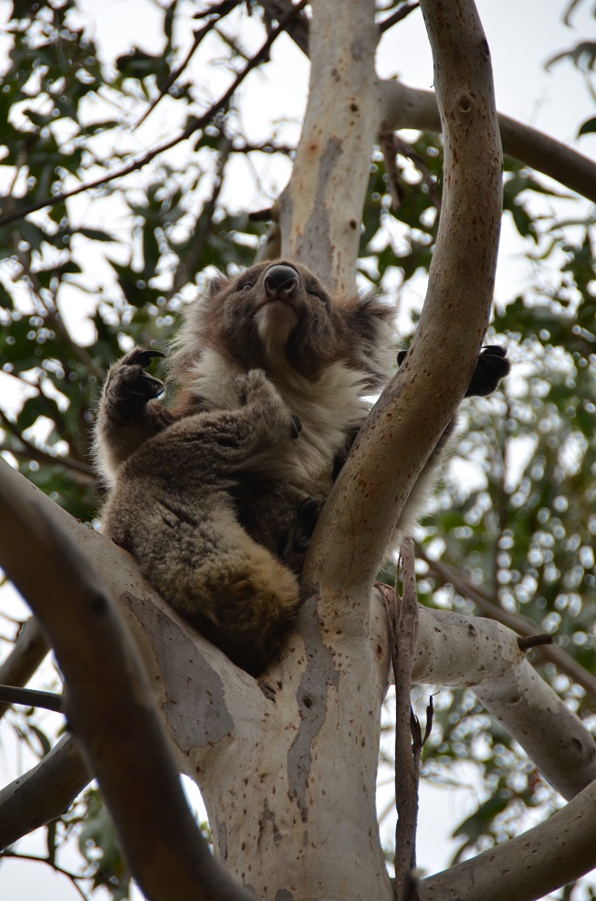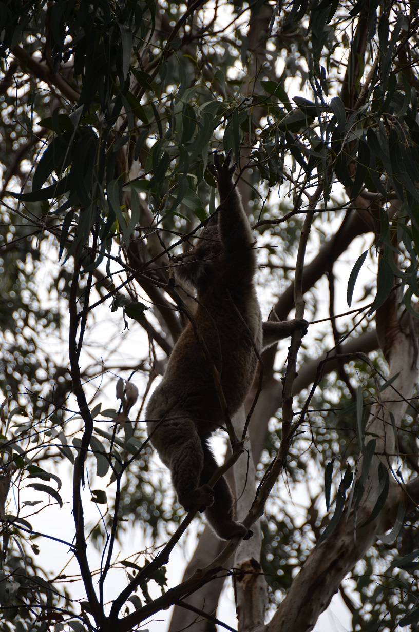 Lundi 24 mars 2014. Réveil matinal pour aller rendre la voiture de location. Puis départ vers la Great Ocean Road. Arrêt à Bells Beach puis traversée de Torquay, Anglesea, Aireys Inlet, Lorne. Découverte des koalas à Kennett River. Puis en route vers Apollo Bay. Récupération des clés de la chambre au Coastal Motel puis tour sur le plage. Apéro au soleil et dîner au Thaihouse (délicieux !).
