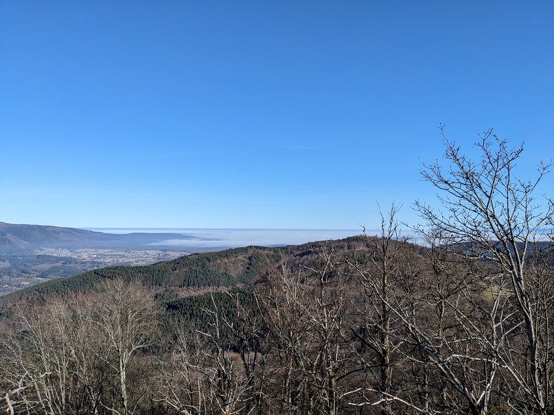 Randonnée au départ du parking situé à côté du stade de Grendelbruch. Première grimpette qui nous permet d’avoir un joli point de vue sur la vallée de la Bruche.