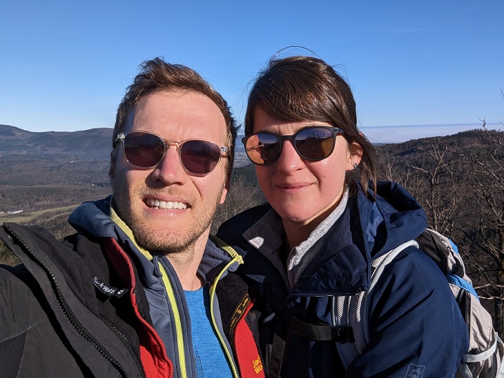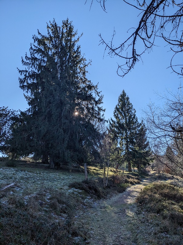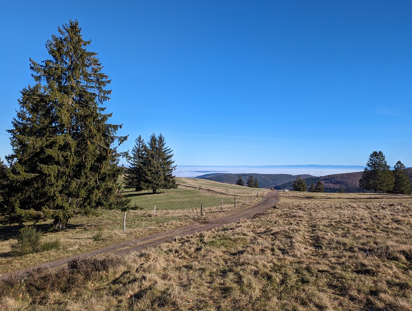 Nous poursuivons la montée, qui s’adoucit pour rejoindre le signal du Hohbühl offrant un magnifique panorama. Nous nous asseyons un instant pour profiter de ce moment.