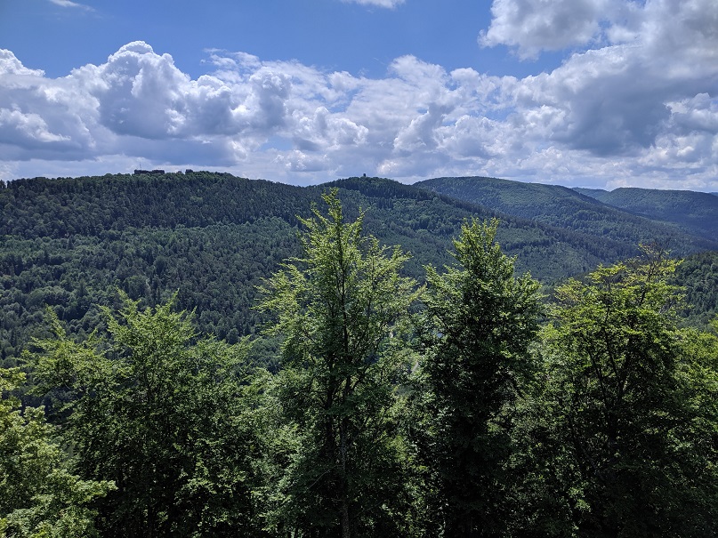 Peut-être un peu de lassitude des coins habituels. La randonnée a débuté en sous-bois sur les hauteurs de Hultehouse. Nous rejoignons immédiatement le sentier des bornes pour aller jusqu’au rocher du Muguet. Le tracé redescend dans la vallée et traverse le canal de la Marne au Rhin pour nous permettre d’aller jusqu’aux ruines du château du Greifenstein. Nous profitons de la vue en haut de l’une des tours pendant le pique-nique, pour observer au loin les ruines du château du Haut-Barr, et un panorama sur la vallée et plus particulièrement, Saverne. Nous redémarrons en descente pour aller sur le rocher Saint-Vit où se trouvent un jardin botanique et une petite chapelle. Nous traversons une nouvelle fois le canal et rejoindre de l’autre côté le plateau du Wasserwald qui mène à un vaste site gallo romain portant le même nom. Nous le traversons et terminons la randonnée.