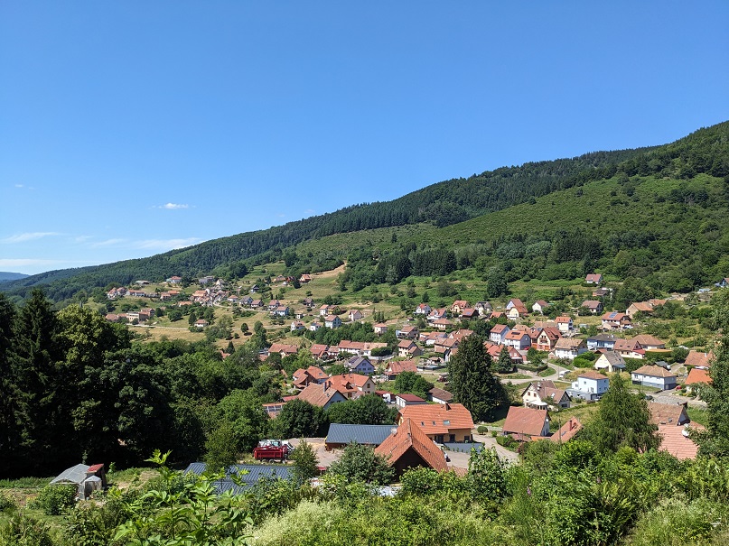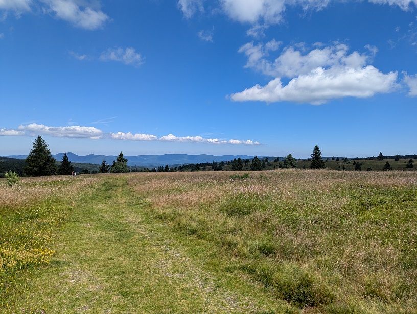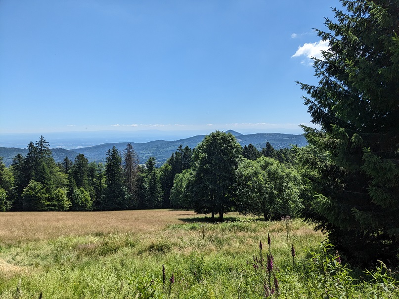La fin de l’ascension nous permet de rejoindre la station de la Serva puis le Champ du Feu, et de passer par la Tour. La descente débute alors jusqu’à la Vieille Métairie où nous faisons une pause pour pique-niquer et profiter de la vue.