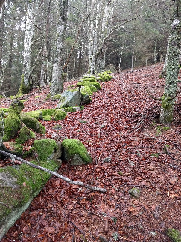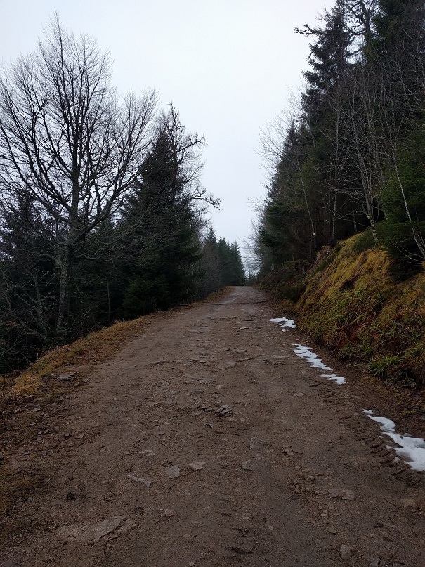 Nous amorçons ensuite la descente sur le lac noir. N’étant pas le plus beau lac des Vosges, et compte-tenu de la pluie qui nous fouette le visage, nous ne nous attardons pas et attaquons la montée en direction du lac du Forlet (ou lac des truites).