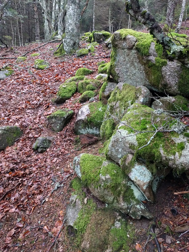 S’en suit une petite descente en sous-bois où la mousse est d’un vert éclatant, avant d’atteindre le lac et retourner vers les Hautes Huttes pour se réchauffer autour d’un bon repas.