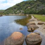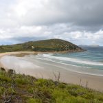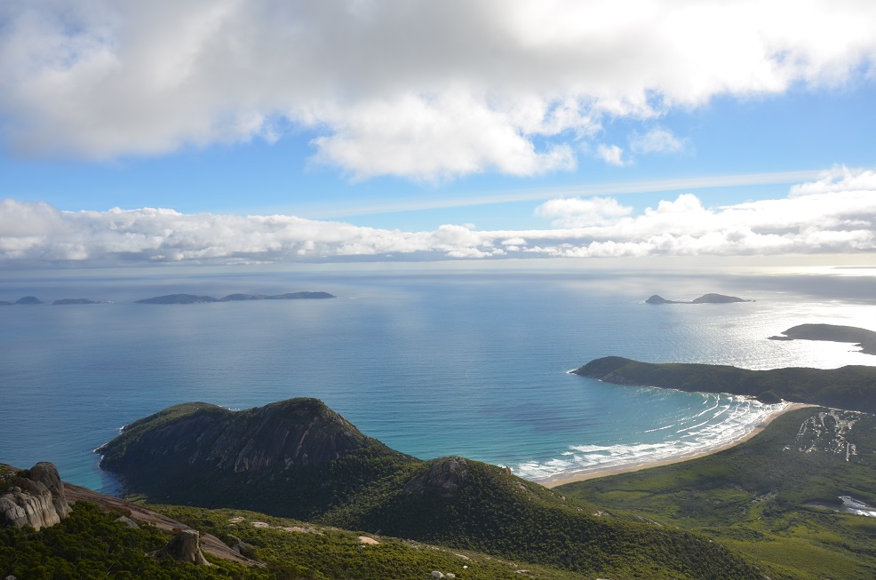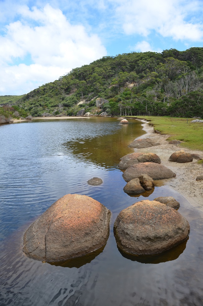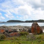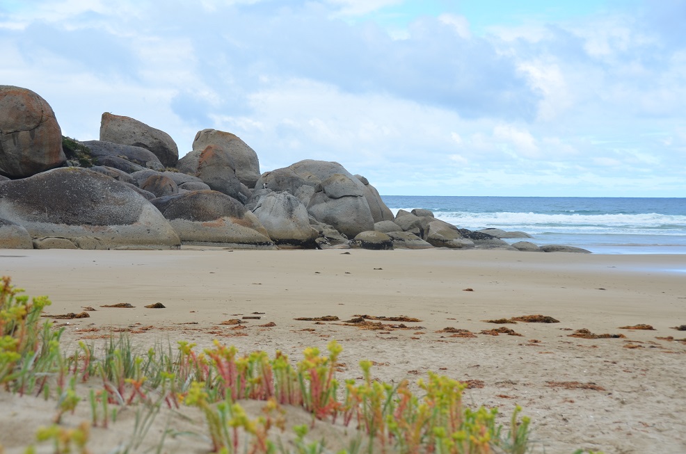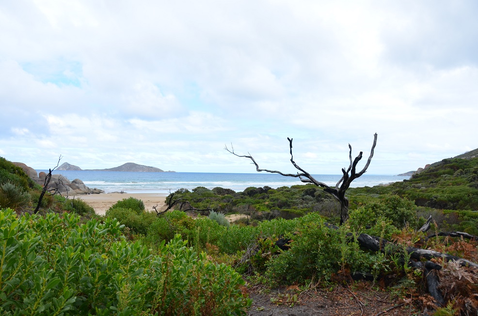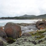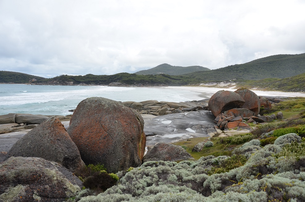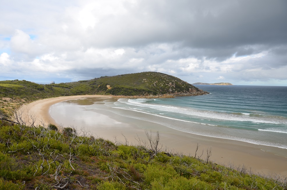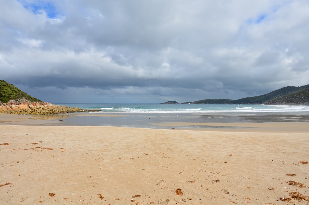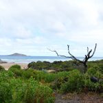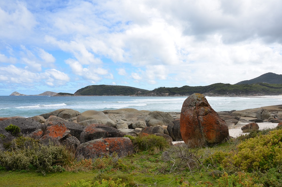 Samedi 22 mars 2014. Réveil sous la pluie. Petit déjeuner. Départ pour la Squeaky Beach puis Picnic Bay et Whisky Bay. Marche sur les sentiers et sur la plage. Retour à Tidal River avec le soleil sur le Foot Bridge. Déjeuner au Take Away. Direction Norman Beach pour une baignade rapide avant de rejoindre Telegraph Saddle Car Park en suivant le bus (car la route est fermée les week-ends de mars). Montée rapide au Mount Oberon pour admirer la vue à 360°. Descente en courant jusqu’à la voiture. Retour au camping. Douche puis nouilles chinoises, lecture et dodo.