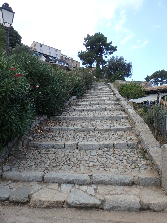 Direction Pigna pour une visite à pied puis à Sant’Antonino. Goûter avec une citronade. Retour sur la baie d’Algajola et baignade sur la plage du même nom. Retour au camping : douche, lessive et repas.