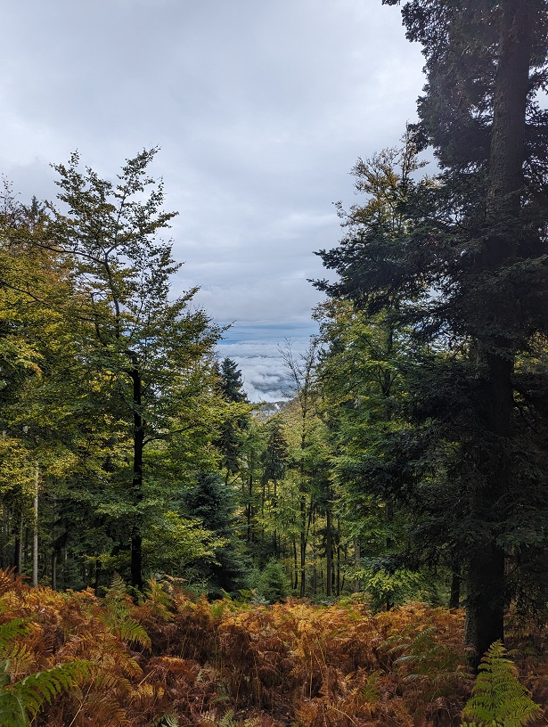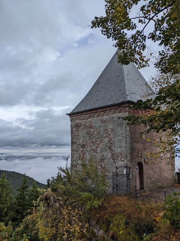 Lorsque nous arrivons au Mont Saint-Odile, nous profitons de la mer de nuages et du panorama.