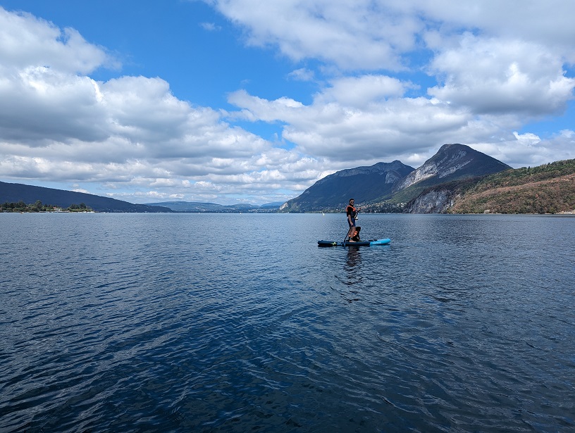 Jeudi 14 septembre. Aujourd’hui ce sera repos et rythme doux. Petit déjeuner tranquille puis un peu de paddle sur le lac. L’eau est magnifique et la vue également.