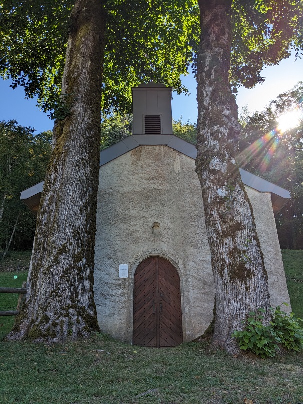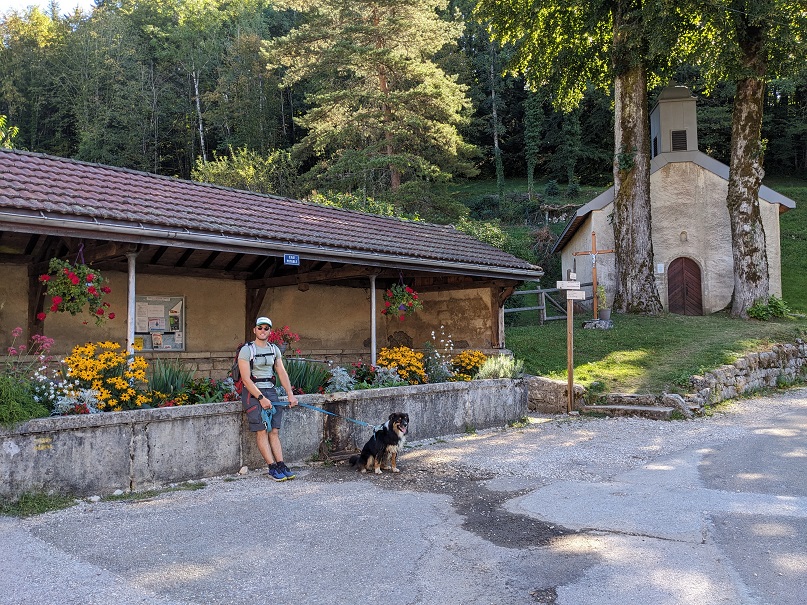 On passe devant l’auberge de l’éolienne puis on rejoint le parking sud du lac d’Ilay. On prend le temps de laisser Thor se baigner car il fait très chaud. On rejoint ensuite Ilay où se trouvent un joli gîte,un abreuvoir et la chapelle des Rousselets.