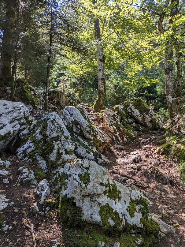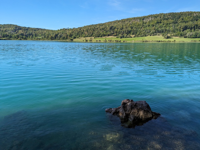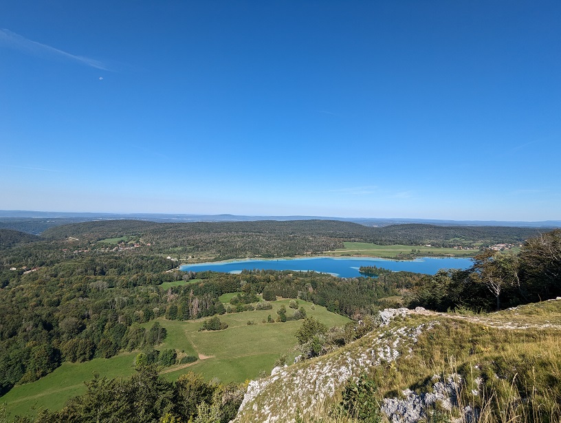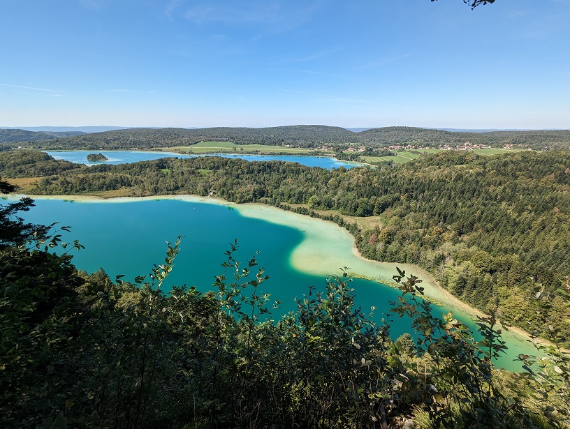 On se remet en route, par le belvédère des quatre lacs puis descente sur le lac de Narlay. On retombe sur la plage de la veille où l’on prend le temps de se baigner.
