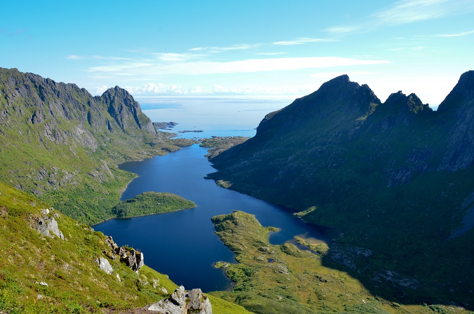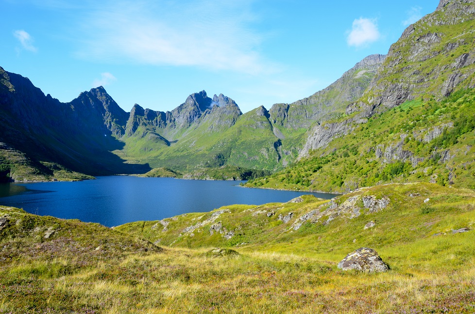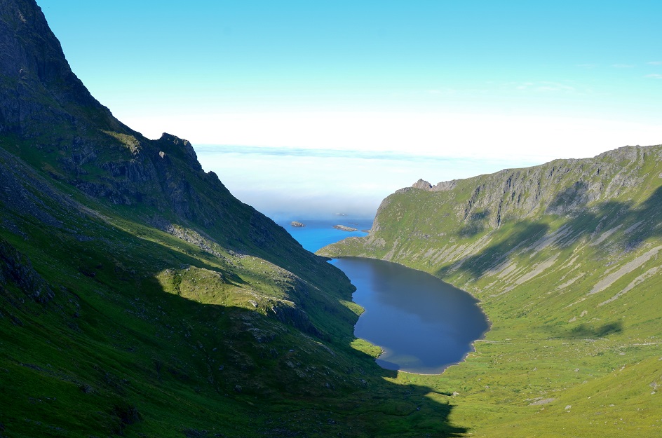 Réveil à 8h45 puis petit déjeuner tranquille dans la beach house. Aujourd’hui on y va tranquille, la rando de Å est à 30 minutes de voiture. Bon OK, c’était sans compter les nombreux arrêts photo ! A Å, on démarre la balade à 10h45. On longe le lac pendant une heure entre zone humide, chemin pierreux et le rivage du lac. Ensuite, on enchaîne avec une grosse montée : 420m de D+ sur 750m. On pique-nique en haut avec une magnifique vue sur les lacs de chaque côté. On redescend dans cet espèce de cirque et on lange le lac sur l’autre côté, c’est bien boueux.