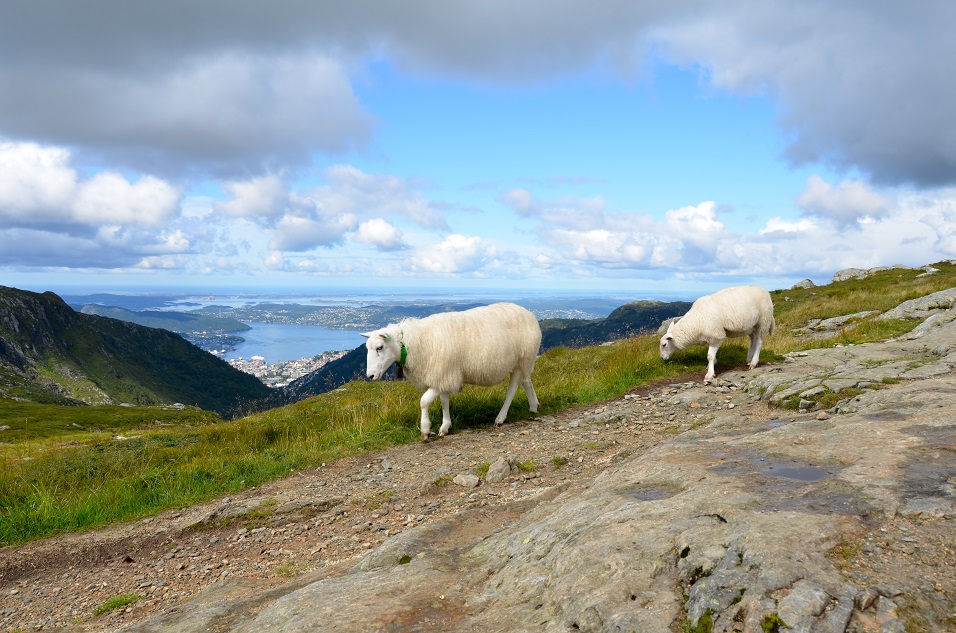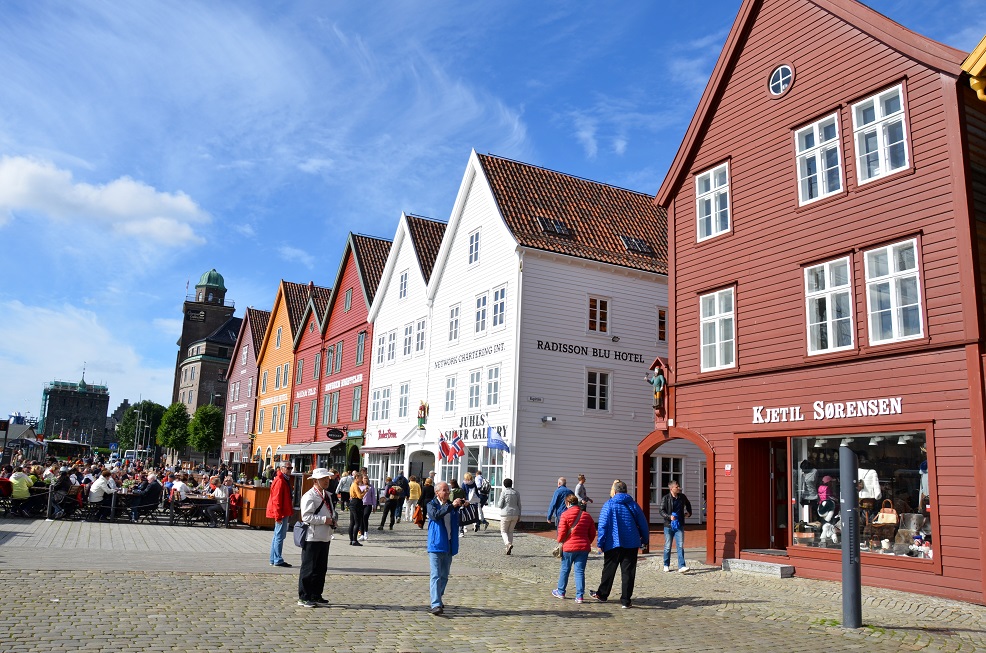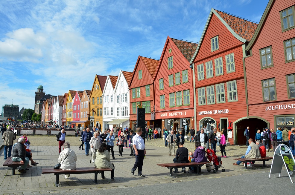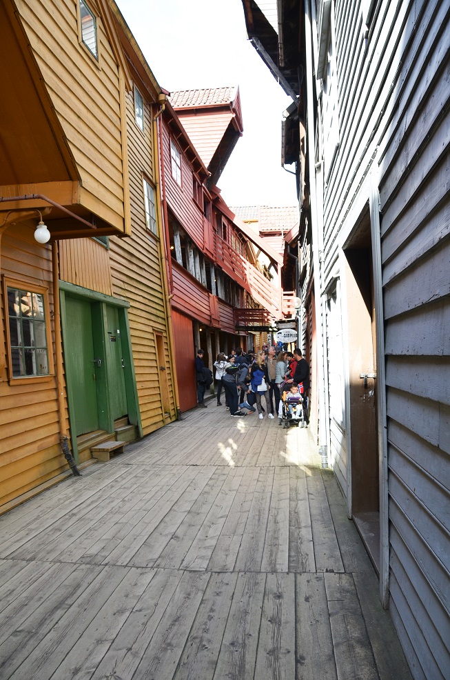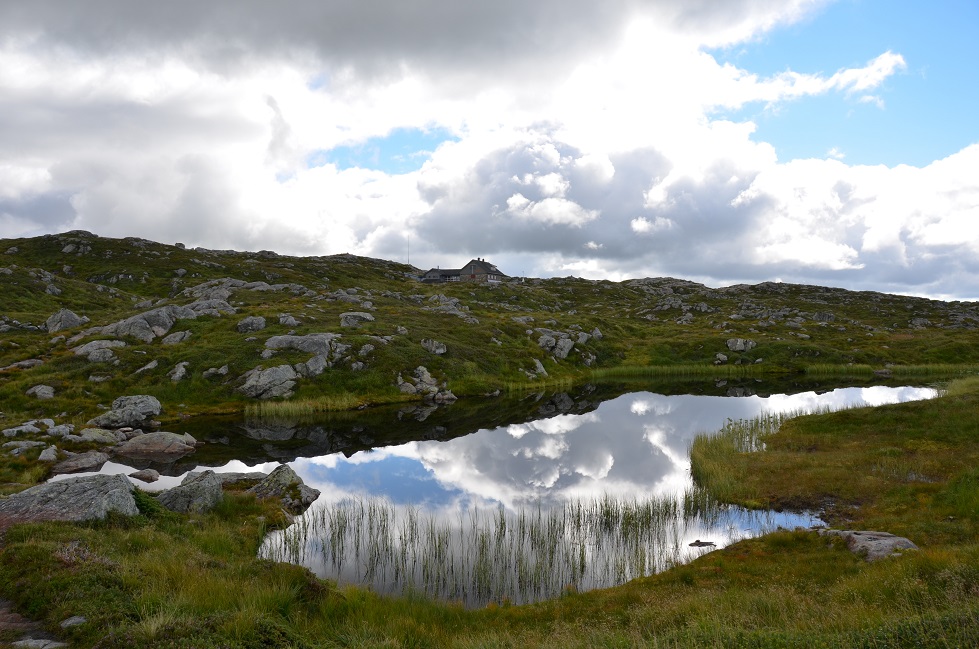 Levés à 8h et petit déjeuner pour partir à 9h, photo devant le port avec un beau soleil. Ensuite, direction Ulriken où il y a un télephérique. Nous préférons monter à pied cette pente abrupte. Heureusement qu’il y avait une section plane en guise d’échauffement avant cette première ascension.La vue sur Bergen et ses environs est magnifique entre collines, eaux et forêt. Nous arrivons sur un plateau parsemé de lacs que nous parcourerons d’Ulriken à Fløyen. Nous sommes entre 650 et 500 m au dessus la mer, le sentier est technique et humide. Nous parcourons 23km avec 1200m de D+ en 5h30. Arrivée dans Bryggen et visite des maisons colorées, c’est vraiment sympa même s’il y a beaucoup de touristes. On va prendre un coup en terrasse devant les maisons puis un bon goûter avec glaces au 7 eleven et cookies du Deli de Lucas. Enfin, on fait un tour à Rema 1000 pour acheter des légumes qui accompagneront le poisson acheté au Torget i Bergen.