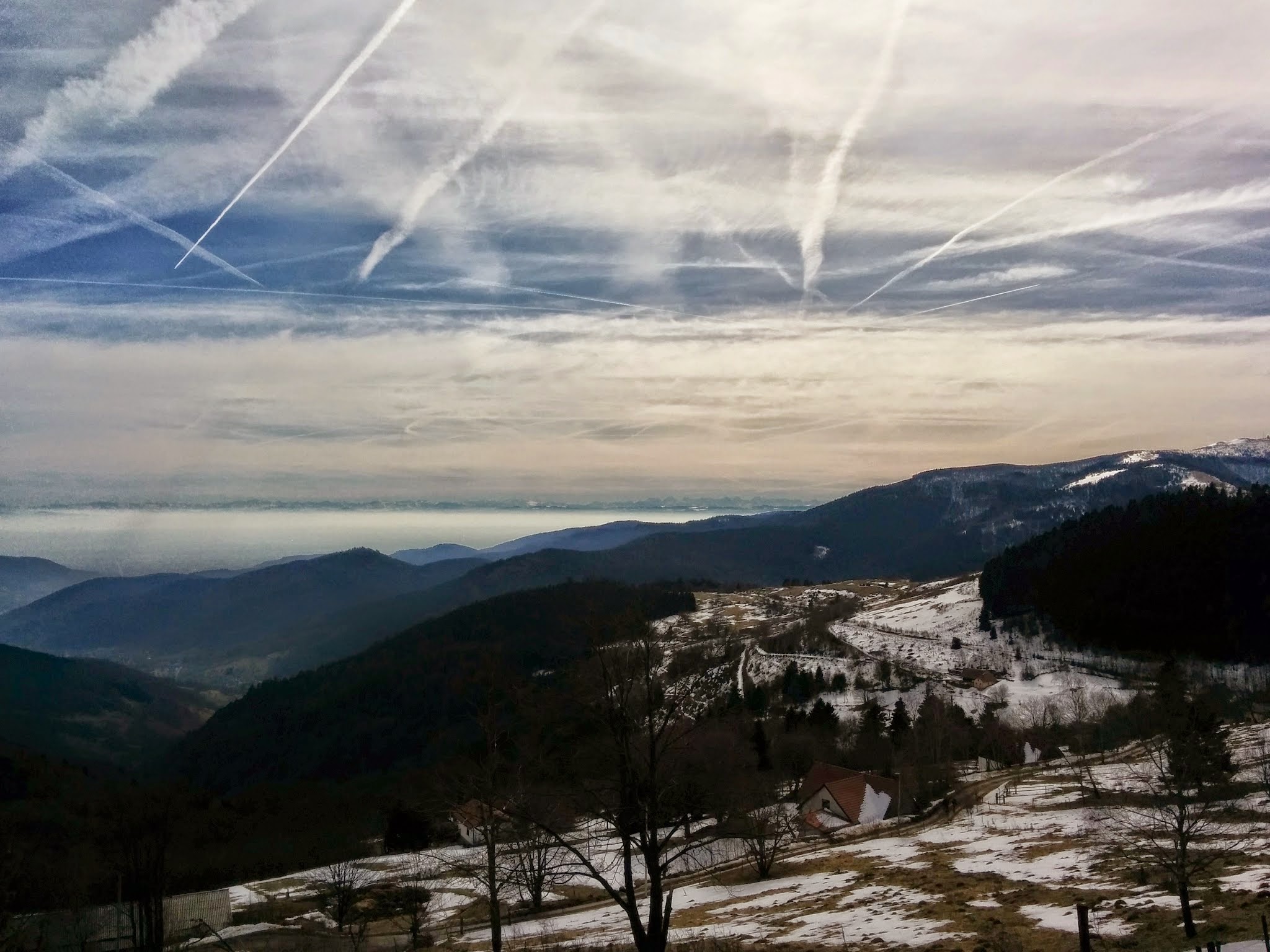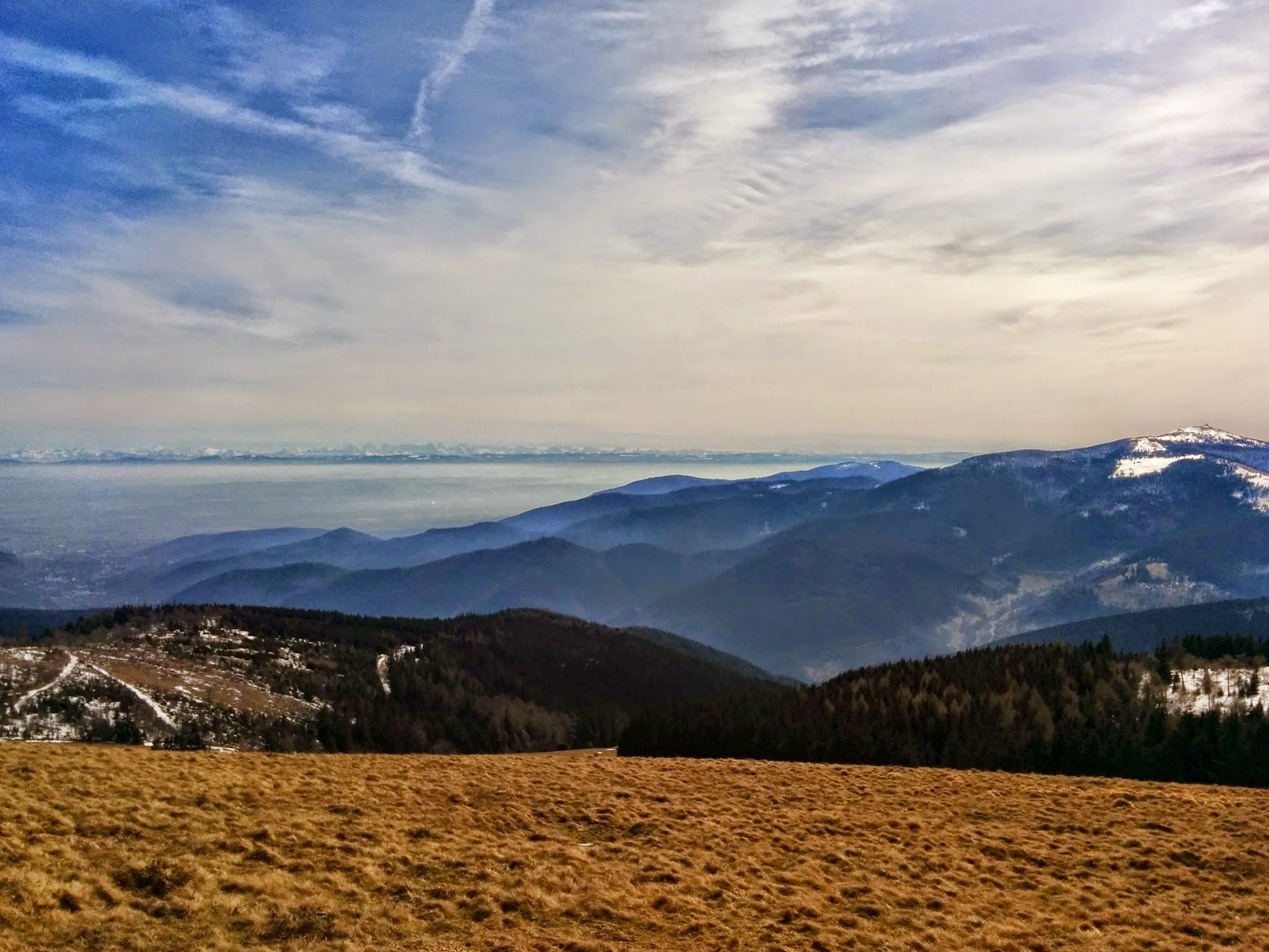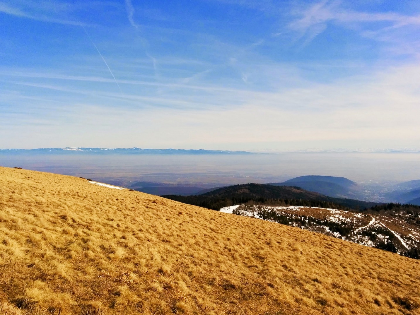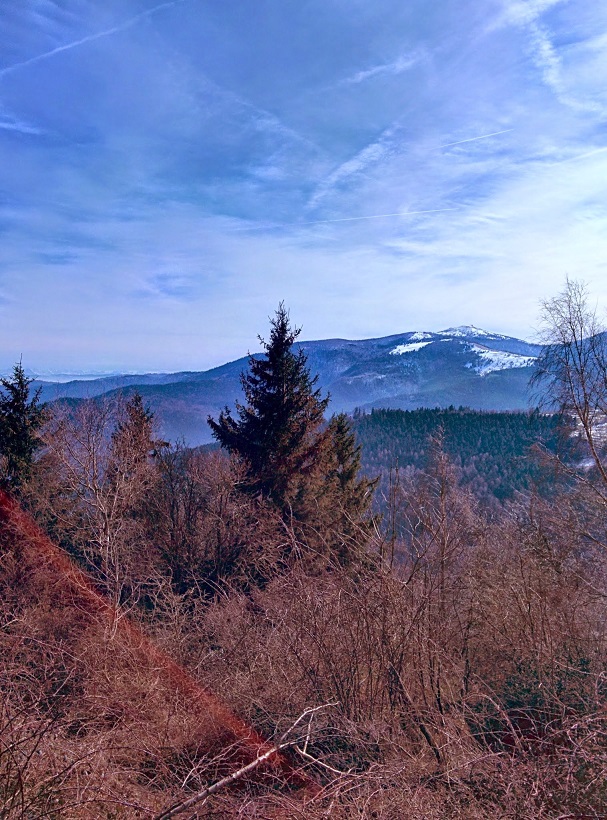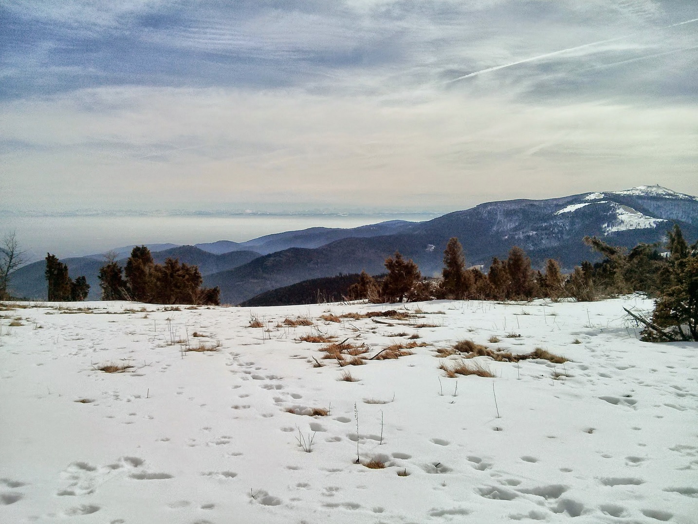 8 mars 2015. Le temps magnifique est symbole de reprise de l’activité pédestre ! Un grand guide de moyenne montagne nous ayant dit de toujours aller vers le sud lors des beaux jours, nous partons en direction de la vallée de Guebwiller. Nous avons fait une bien jolie randonnée entre restes de neige et soleil. Un pique-nique au sommet du Petit Ballon pour profiter d’une vue panoramique sur la vallée de Thann, les Alpes et le Grand Ballon.