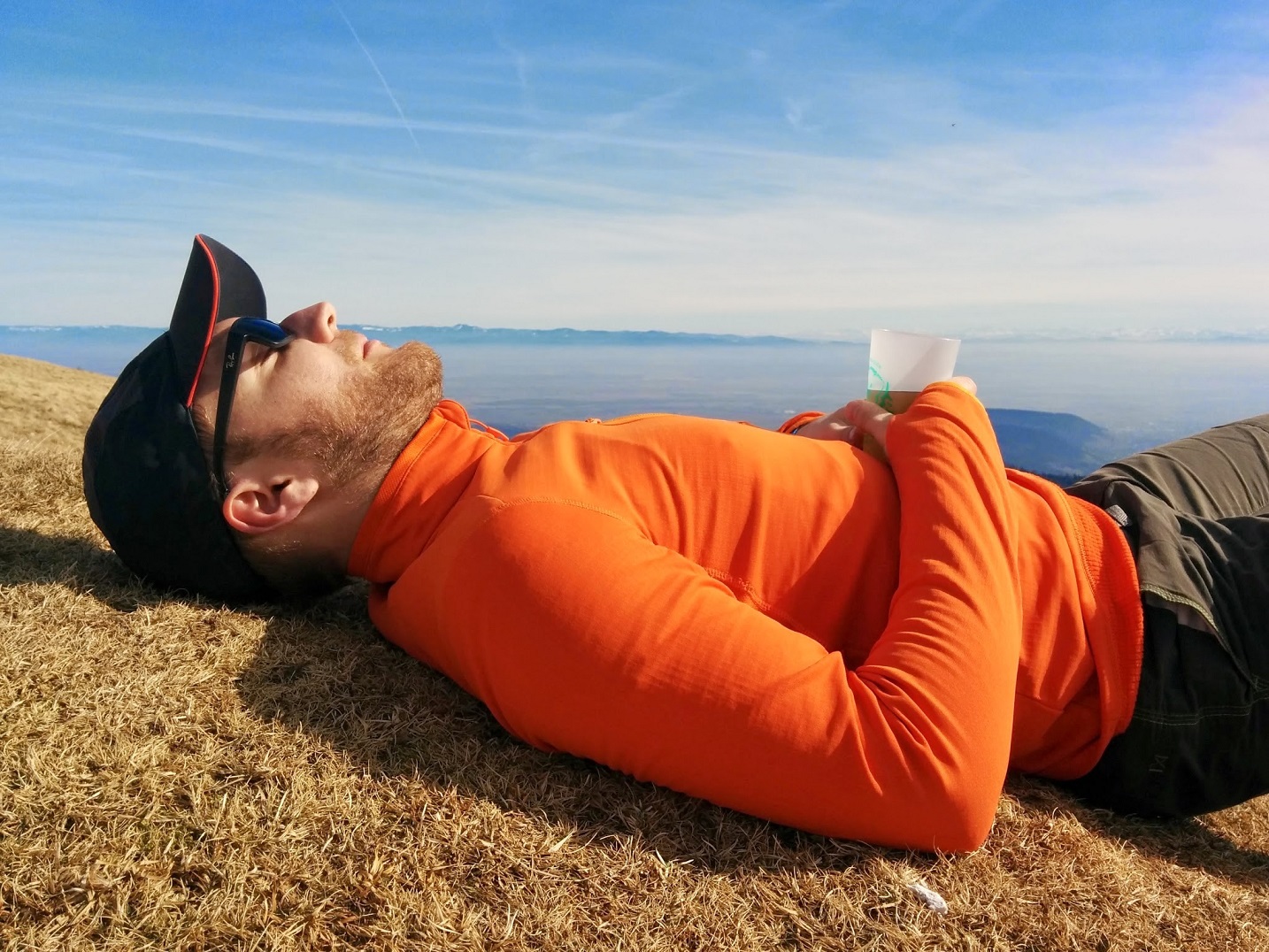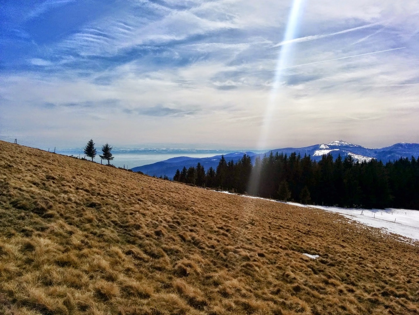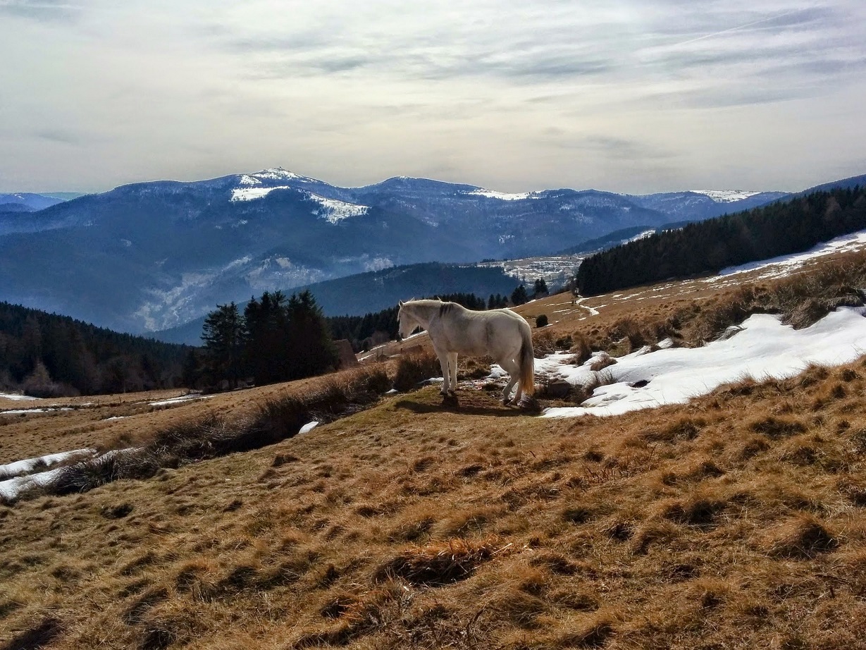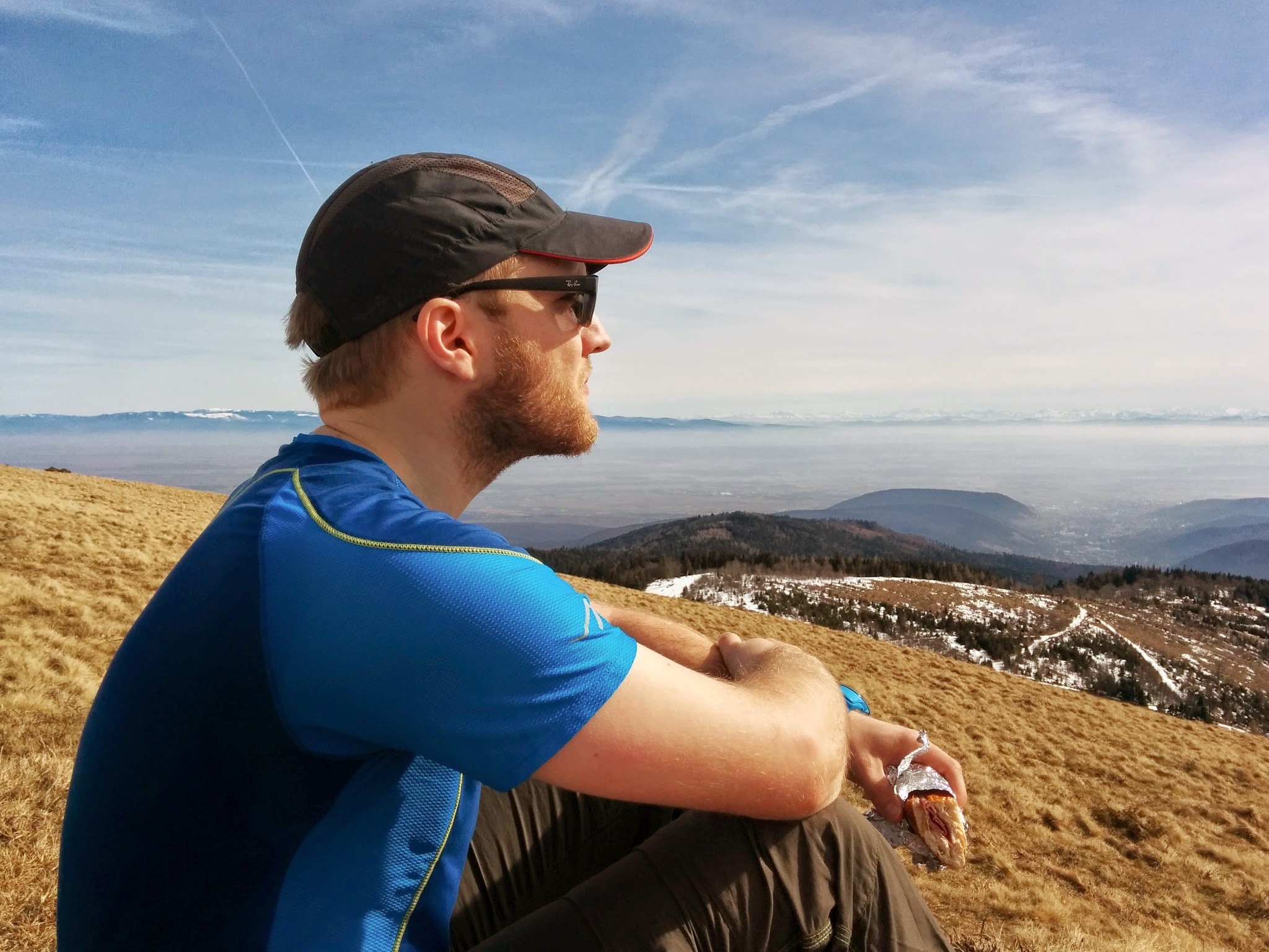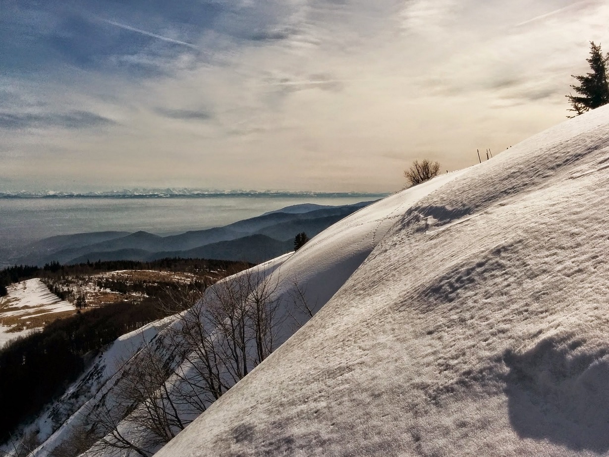 8 mars 2015. Le temps magnifique est symbole de reprise de l’activité pédestre ! Un grand guide de moyenne montagne nous ayant dit de toujours aller vers le sud lors des beaux jours, nous partons en direction de la vallée de Guebwiller. Nous avons fait une bien jolie randonnée entre restes de neige et soleil. Un pique-nique au sommet du Petit Ballon pour profiter d’une vue panoramique sur la vallée de Thann, les Alpes et le Grand Ballon.