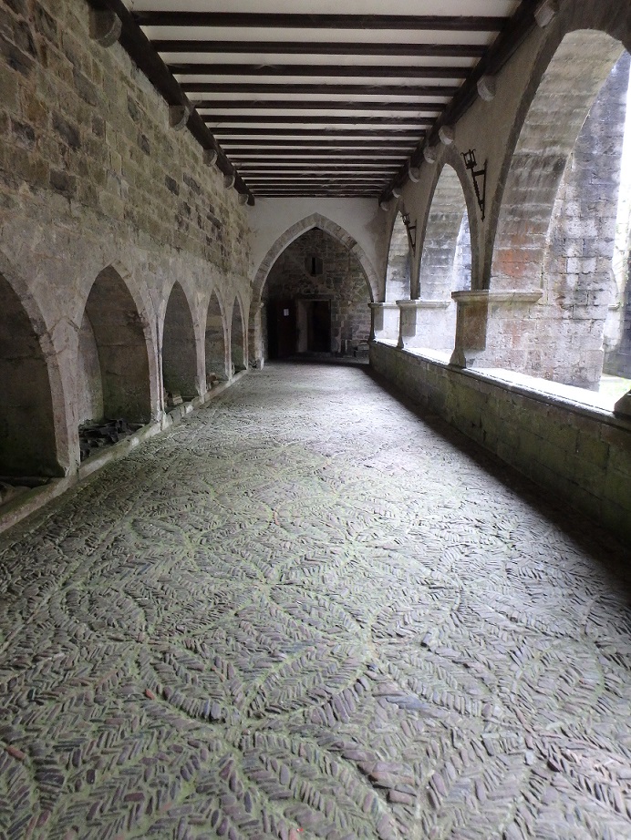 Mardi 12 septembre 2017. Aujourd’hui, un peu de tourisme dans le nord de la région de Navarre, après avoir passé la frontière espagnole. Nous commençons par Roncevaux et la visite de la collégiale. La visite guidée du musée permet de découvrir divers objets religieux (reliques, peintures, tenues, …). Puis, nous visitons une église reconstruite au XVIIème siècle, l’originale ayant été détruite pendant la bataille de Roncevaux. Nous finissons par un tour dans le cloître. Il fait frais car nous sommes en altitude, nous ne traînons pas. La pierre conserve l’humidité et le froid.