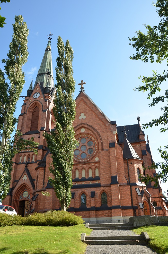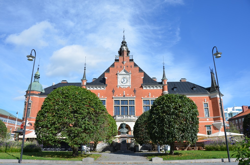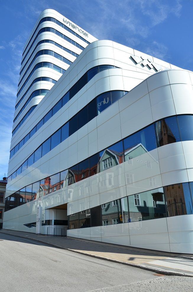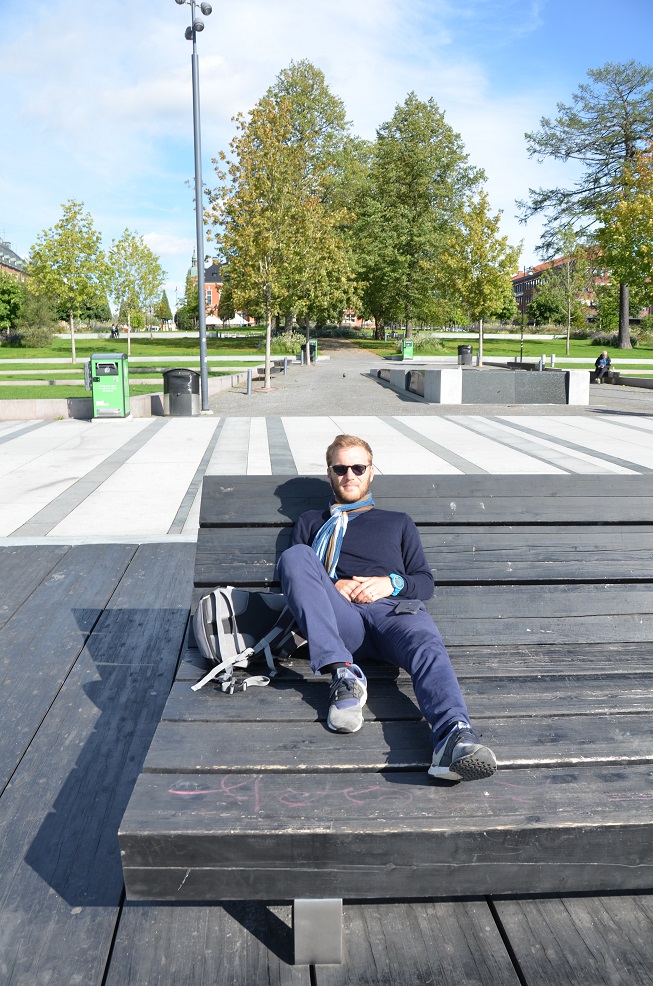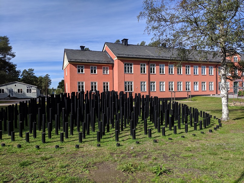 Après cette petite balade, nous prenons le van pour aller dans une petite crique sans réel intérêt. Nous pensions y trouver un village de pêcheurs mais ce n’est pas vraiment le cas. Nous nous dirigeons ensuite vers le parc Umedalen, comportant une quarantaine de sculptures. Nous prenons les vélos et faisons le tour du parc. Puis, toujours à vélo, nous rejoignons le centre ville d’Umeå. Nous posons les vélos dans un des nombreux parcs dédiés puis parcourons le centre à pied en admirant de beaux bâtiments dont l’hôtel de ville plutôt ancien et la bibliothèque flambant neuve.